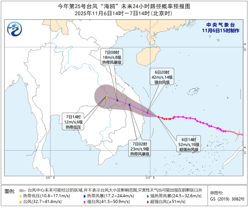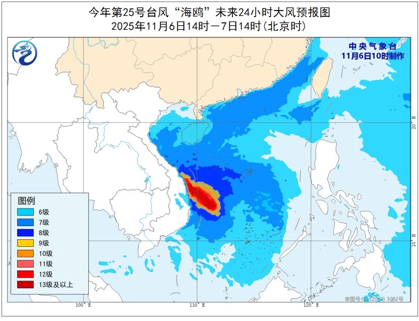 据今天早些本领中央表象台台风公报,“海鸥”将至今天(6日)夜间在越南中部一带沿海登陆(40至45米/秒,13至14级,台风级或强台风级),之后强度赶快松开。